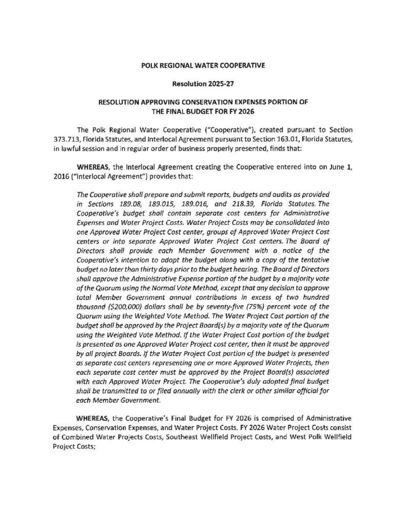 Resolution 2025-27 Executed 2026 Conservation Budget