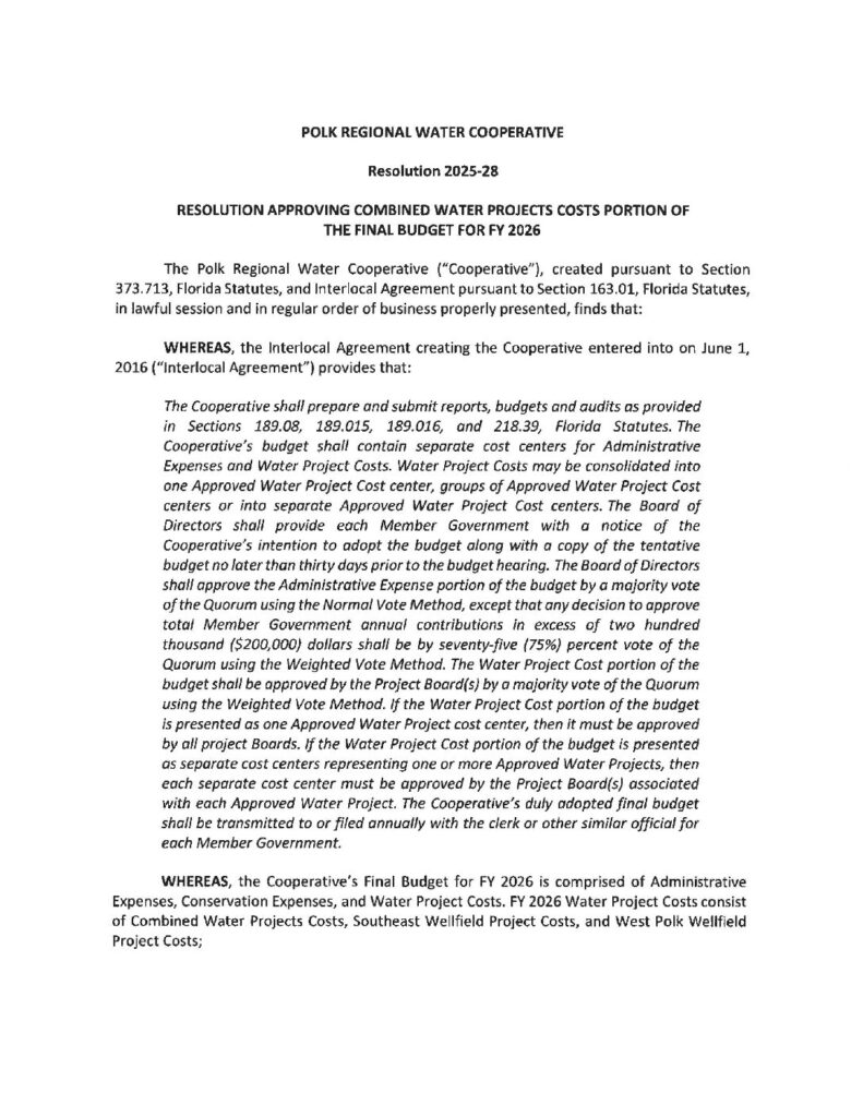 Resolution 2025-28 Executed 2028 Combined Prjs Budget